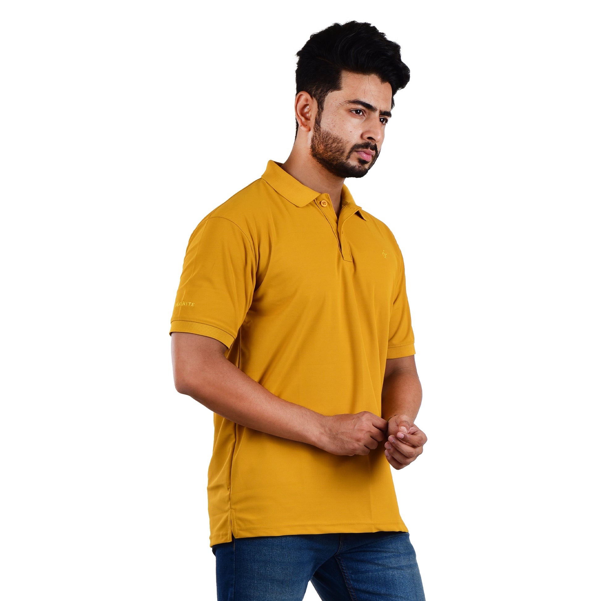 Stand out effortlessly with this Yellow collared t-shirt made from a flexible polyester-spandex blend. Comfortable, breathable, and with a modern tailored fit, it’s ideal for weekend outings, casual meetups, or everyday wear.